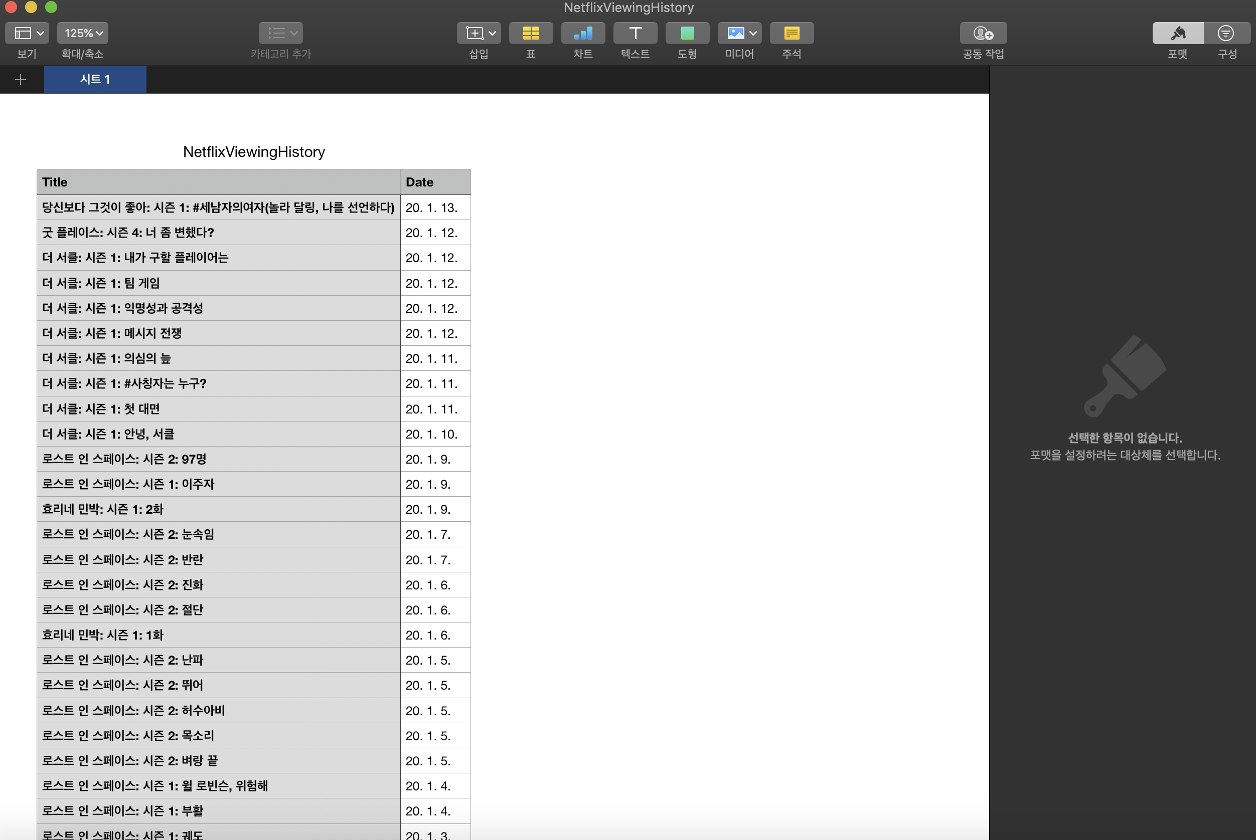 다운로드 한 문서를 열면 내가 본 시청 기록을 모두 볼 수가 있다.