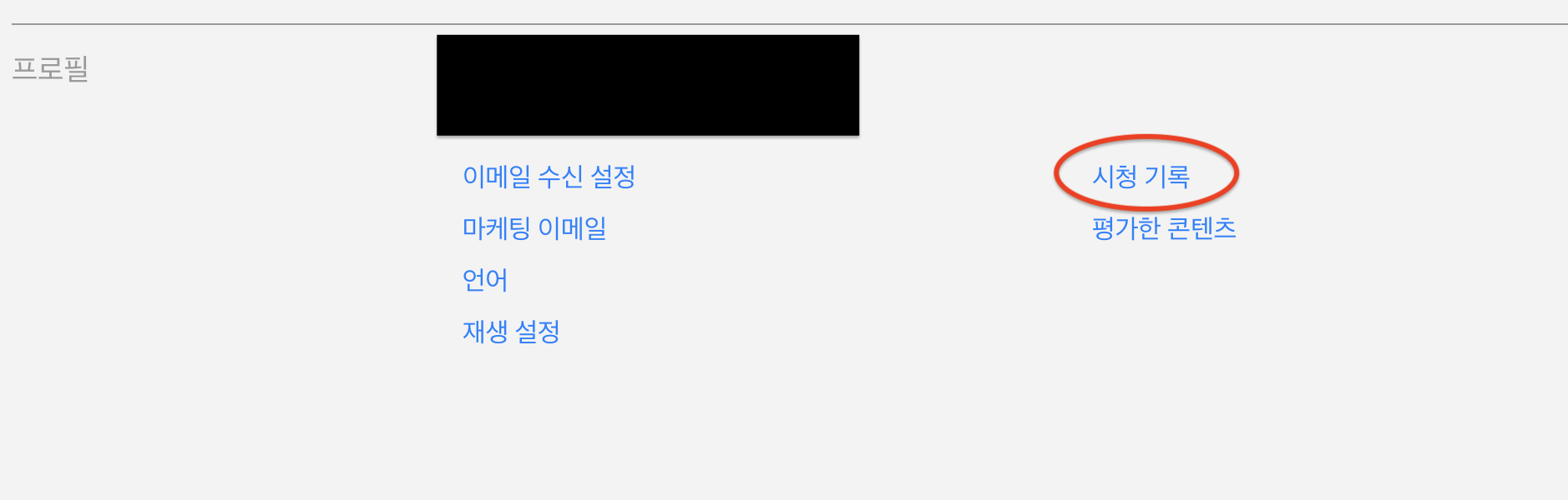 하단의 "프로필" 코너에 있는 시청 기록을 클릭한다.