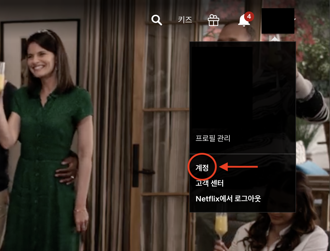 먼저 넷플릭스 우측 상단에 있는 계정 버튼을 누른다.